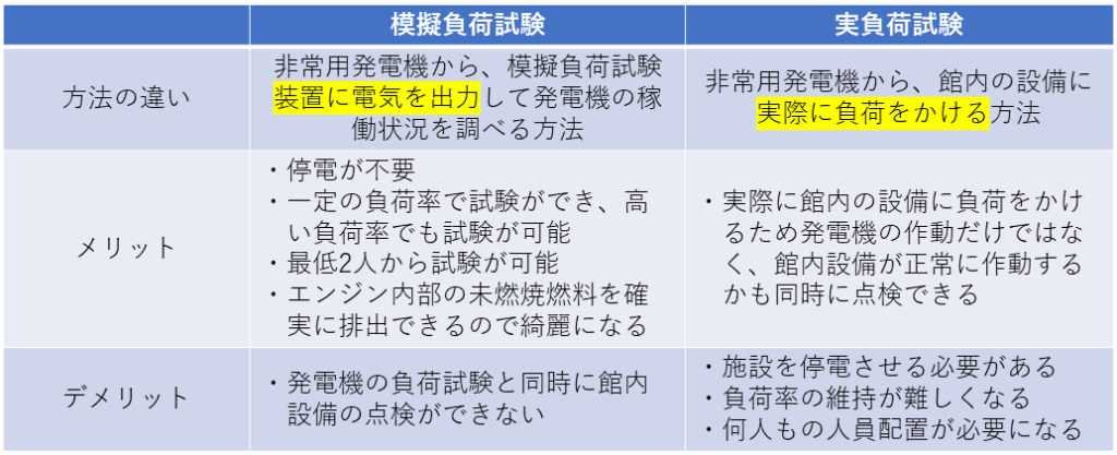 負荷試験は、疑似(模擬)負荷試験と実負荷試験の2種類あります。